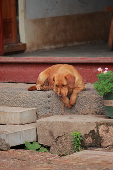 丽江的狗狗多的夸张,几乎家家户户都有养狗,随时都会看到散养的大狗小狗在小道里跑来跑去,但它们很友好,有时看见它们躺在自家的大门口,非常悠哉。想念大狗宝
