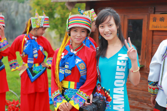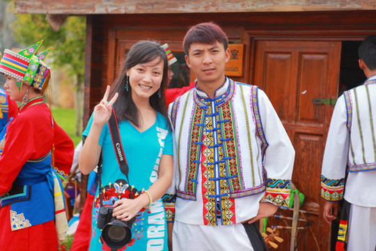 正门口很多阿诗玛服装的出租柜台一贯喜欢体验民族风的我又开始得瑟开了