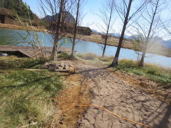 回来的路上,我们发现与左边湖泊相对的右边竹林外,有很大的噪音,是造房子钉木板的声音,估计是搞开发,我们打算过去看看。