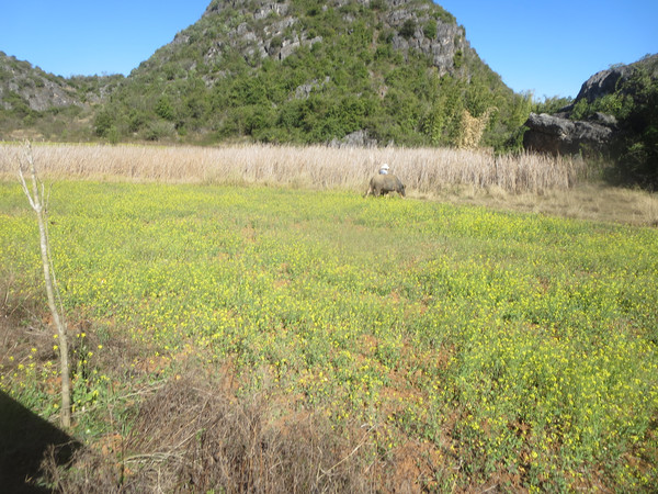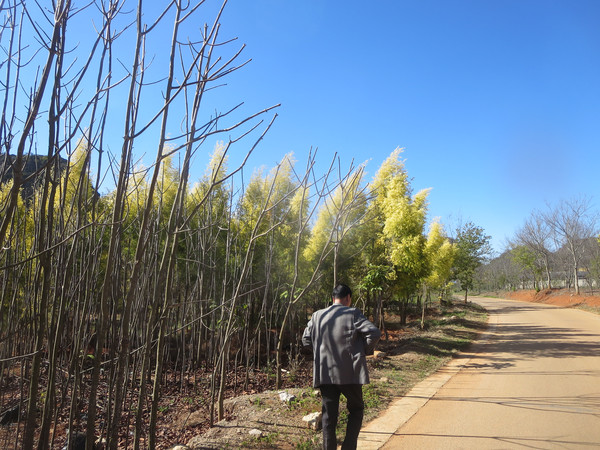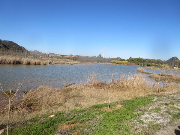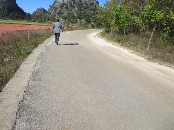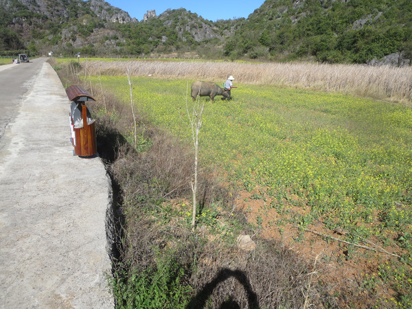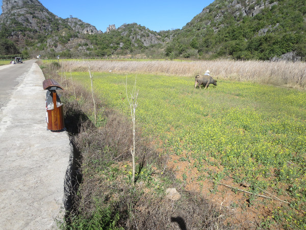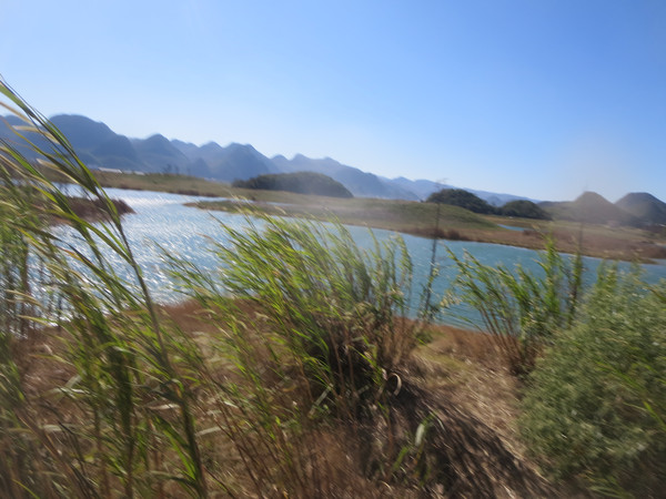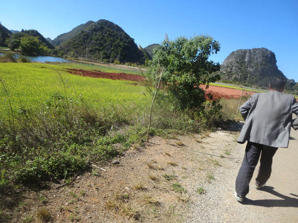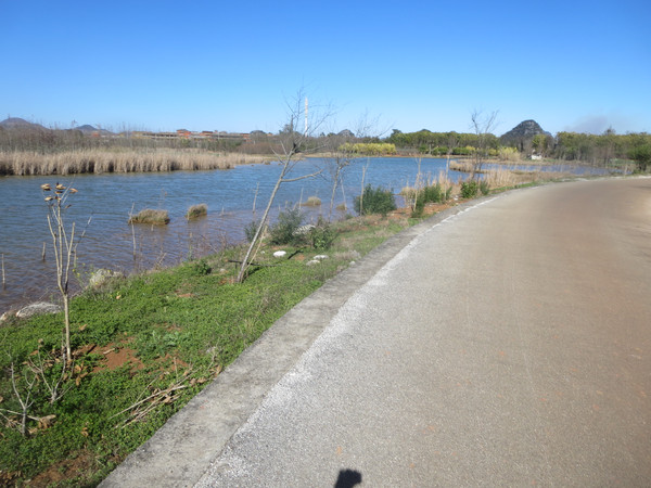 我们沿着湖边小路走到度假村那边,然后沿着公路返回普者黑村。