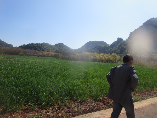 最后决定还是往村里走,虽然景区与农田之间有铁栅栏,但还有通道,我们很快出去,来到希望的原野上。
