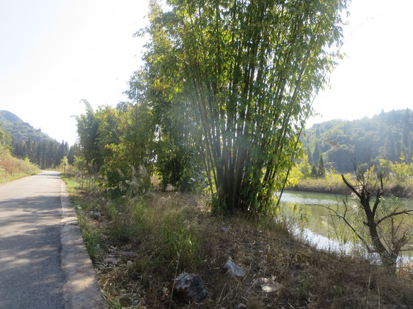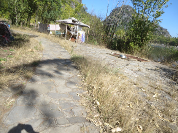 断头处是小河边的码头,宽约十米,对面也有小路,是通往大湾子的游步道,这里少一座桥,也许是当年建设时钱用完了,没能连起来,也许当年的设想是这里有船摆渡,但游客稀少,也就无法维持,不管怎么说,是宣传不够,大多数地图均未标明游步道,游客又如何知道这里还有一条这么漂亮的道路呢。