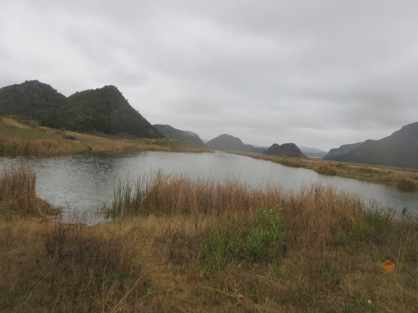 后来又有一次,我们到另外一条观光车道去冒险,回来时在我提议下,我们出白脸山村,走过大片湿地,然后往蒲草塘后面的山往边上绕过去,我感觉那边可以走到那天我们看到的开发的草棚与大湾子处。