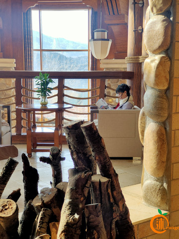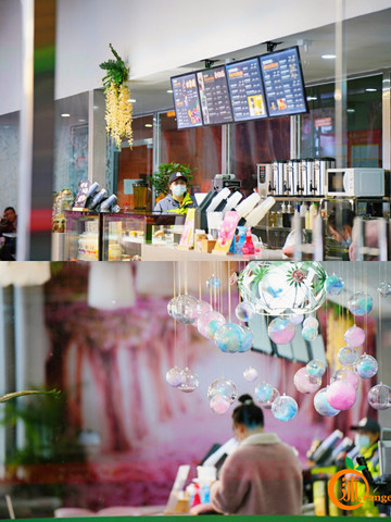 游客中心的一层有咖啡店,装修风格粉粉的很温暖,来一杯热饮,瞬间满血复活。二层是一个自助餐厅,环境干净整洁,菜品丰富。室外有一个美食广场,玩的累了,也可以在这里补充能量,欣赏风景。