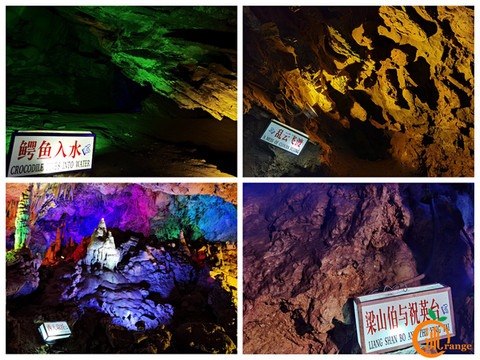 其中最为壮观的景观是:洞壁具有浮雕特色的“龙绘天书”,形态奇特,俗话说:“三分像,七分想”这些钟乳石在五彩缤纷的灯光照耀下,惟妙惟肖,或似片片浮云,或如座座莲花,或如簇簇巨蘑。