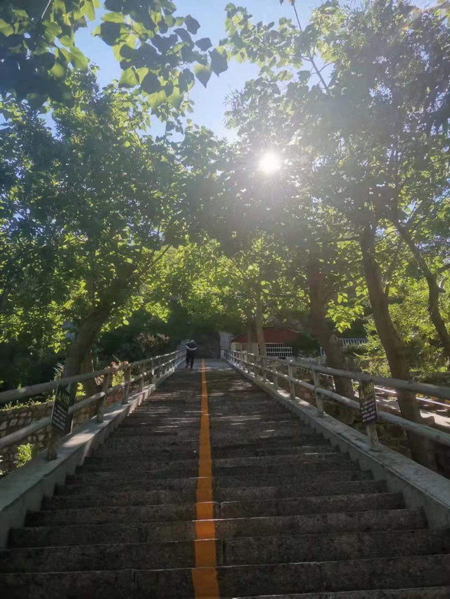 丫髻山也是非常适合有氧运动的,总共分为三段,第一段是直上的楼梯,这不算高,但是相对比较陡,大约需要半小时爬上去,我们上去看到有个阿姨累趴在地上了,年龄大的还是要量力而行。