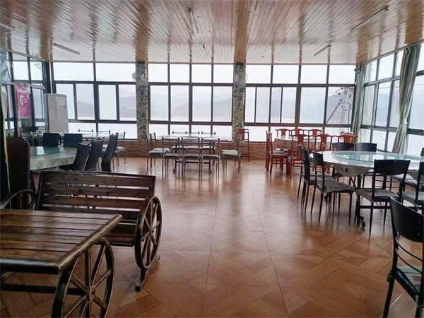 餐厅可以容纳100人就餐,大厅没有过多修饰,呈现出温暖朴素的质感,大大的落地窗,恰到好处的桌椅,望得见窗外的金海湖湖景。