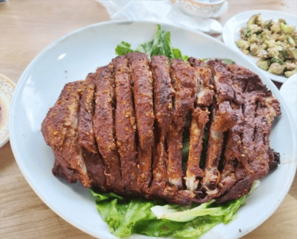 过瘾的烤羊肉,无疑便是烤羊排了,一整块羊排,肥瘦相间,鲜嫩多汁,一阵香味便扑鼻而来,肉汁肥而不腻,外焦里嫩,羊膻味也被覆盖得一丝不剩,这才是享受的味。