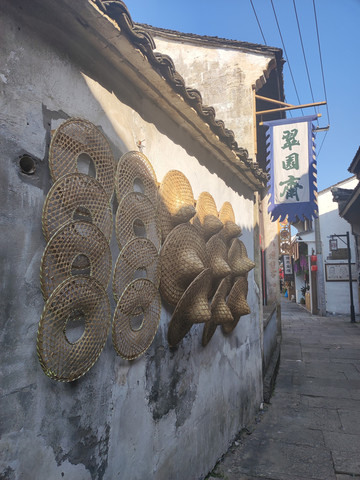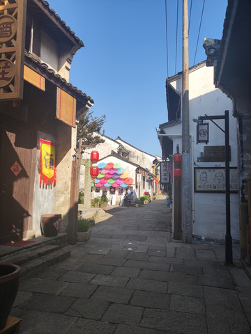 岳园一路之隔是小村的老街,也是游客的美食集散地。中午在“大司空家庙”广场前的小饭店驻足休息,老板夫妻很会做菜,价廉物美,口味也很不错。因着天气好都坐在户外,一张方桌,几张板凳,吃着乡村土鸡和有机蔬菜,晒着温暖的太阳,好多人都大呼幸福。在城市里,钢筋水泥的笼罩下,想头顶蓝天脚踩土地摆一张桌子,有时都是一种奢望。老街蜿蜒曲折,因为人不多,很多铺子都关了门,巷子颇为安静。走着走着突闻丝竹之声,发现这里居然是萧凰乐器的生产地。小巷里手工艺人打磨着蛇皮制作越胡,各色民乐一应俱全。