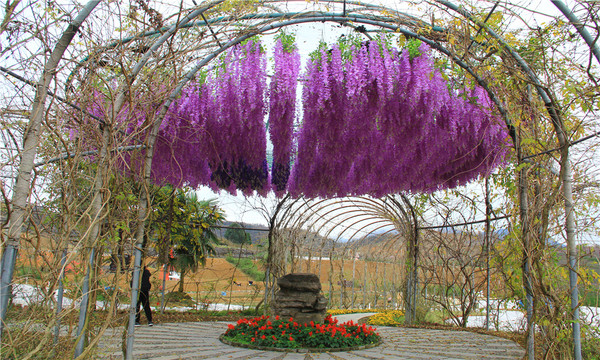 沿途一路的山山水水,山水相连,连绵起伏。山腰盘旋的那曲折蜿蜒的公路如缕缕飘带缠绕在那青山之中,成为一道独特亮丽的风景。朦胧的远山,笼罩着一层轻纱,影影绰绰,在飘渺的云烟中忽远忽近,若即若离,看到此场景,只想感慨一句:“此景只应天上有,人间能得几回闻