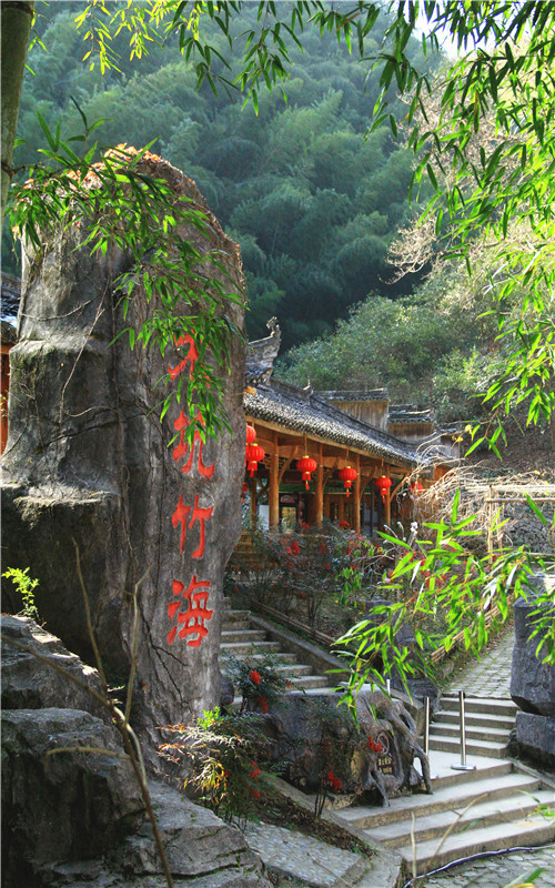 木坑竹海又称"滴翠谷",此谷纵深约6公里,四面环竹,郁郁葱葱,形如金斗,聚财不漏,风水甚佳。