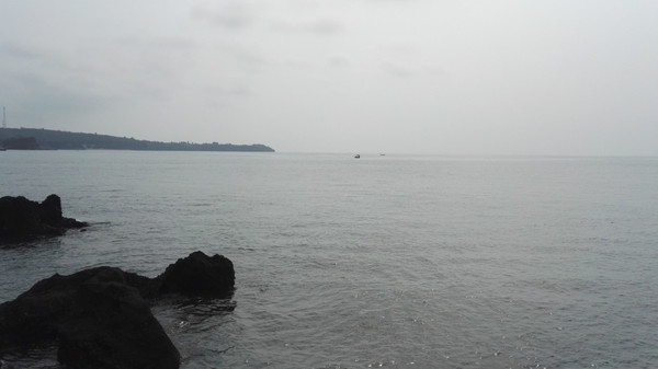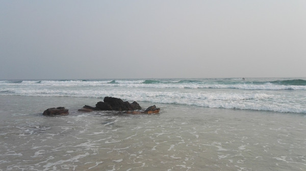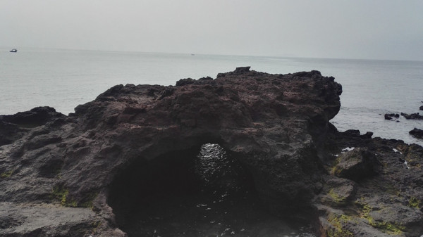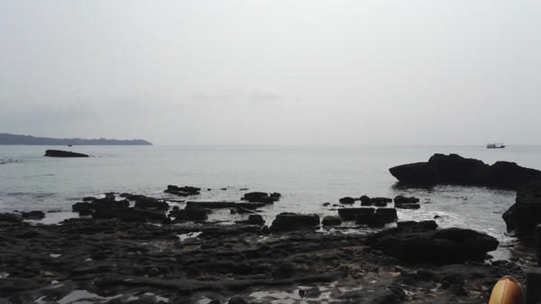 阳光还是很毒辣的,这是曝光太严重,看起来像是阴天。阳光下,礁石显得更黑了。