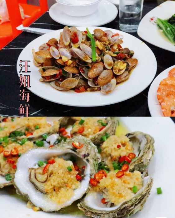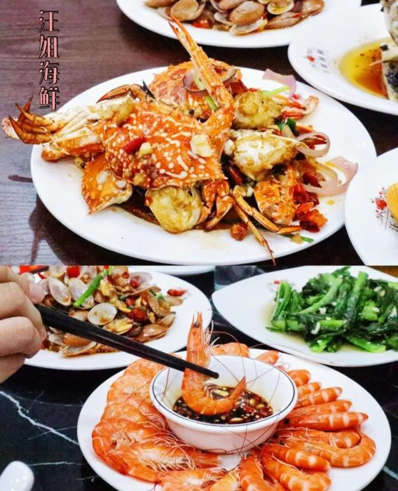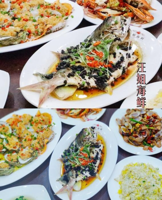 从老街出来,我们就去打卡下一家网红店:汪姐海鲜,就在老街口的对面,所有的美食都聚集在一起,真的是吃货的天堂,汪姐海鲜真的是如众多网友推荐的,价格便宜,味道一绝,套餐性价比也是很高,推荐点招牌香辣蟹,白灼基围虾,香辣芒果螺,清蒸石斑鱼,味道都很好吃,海鲜也都是现捞现做的,非常的新鲜,来北海游玩我建议你也来打卡。