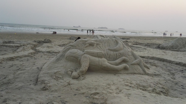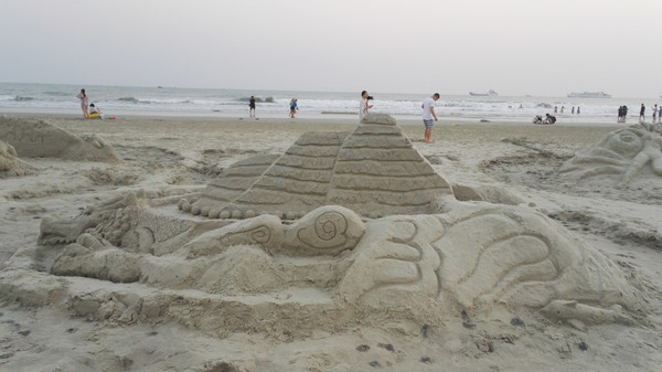 在沙滩另一边有很多这样的沙雕,还别说真的得很好看。