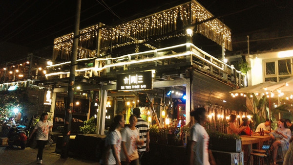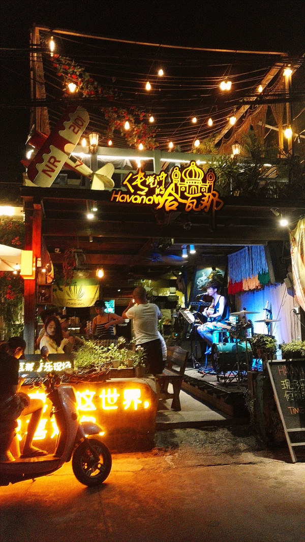 南湾街上有好多这样的酒吧,这个小哥哥唱的很不错。