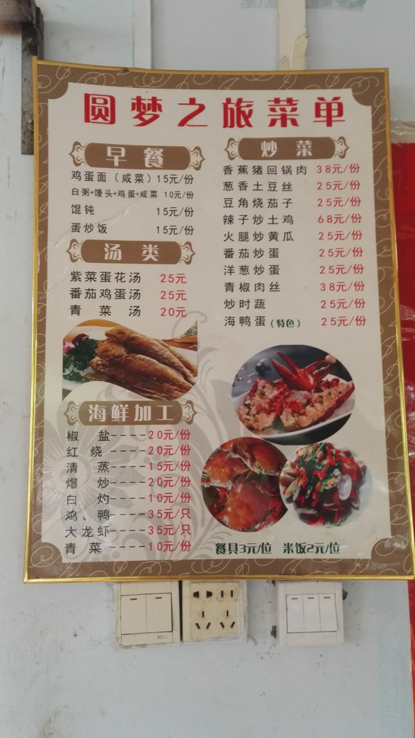 这是店家菜单,之前在做攻略的时候,就发现岛上基本每一家民宿都可以加工海鲜,味道应该都不会差多少。(但是早餐是真的贵!心疼钱包一秒钟)