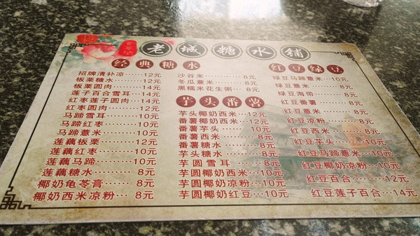 吃完虾饼继续出发,寻找下一个网红店:老城糖水铺。我和暴君分别点了招牌清补凉和芋头椰奶西米,味道中规中矩,没有很特别,价格偏贵,不是很推荐。花费:24元