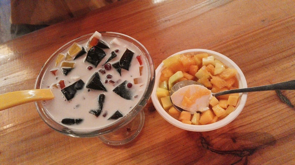 一路过去,太阳晒得头疼,找了家小店,吃了椰奶冻,十块一个,只有中间一点,而且这个椰子壳是回收再利用,不过味道还是不错。比较推荐。