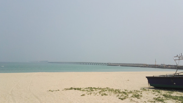 我们看时间还早,就骑车去找中石化原油码头。这个景点估计知道的人不多,也不太好找,导航了半天也只到了音乐沙滩,这个沙滩人也非常少,有一些潜水项目。这里距离原油码头还有一定距离,而且我们看了一下,那边应该过不去,就出发去天主大教堂。