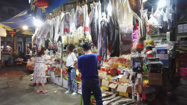 随处可见卖海鲜干货的,琳琅满目。不过我对这些不感兴趣,看看就好啦。
