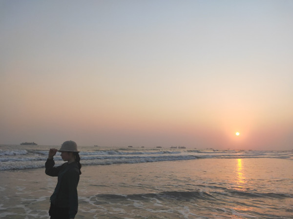 感觉五彩滩是没戏了,但是也不能影响我看日出,我便和暴君跑到靠前一点的海边,因为那样才会没人。