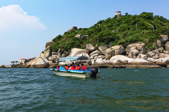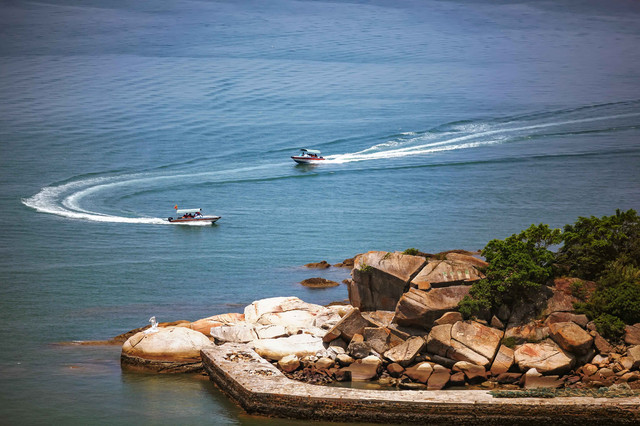 从巽寮湾游客中心坐快艇,15分钟就可抵达三角洲岛。