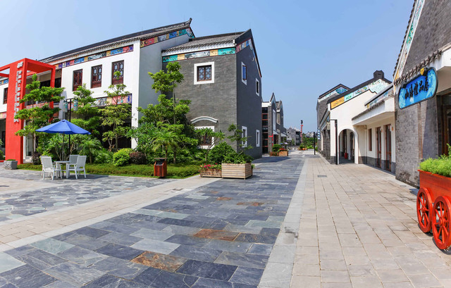 这个商业街,据说金融街花了两亿元打造。整个街区占地面积约55120平方米,建筑面积约28882平方米,主要包括天后宫、滨河酒吧街、特色购物餐饮街区、演艺广场以及其他配套设施。其建筑和园林的整体风格主要围绕岭南风情、妈祖文化、客家文化、海洋文化等主题进行体现,建筑画风挺不错。