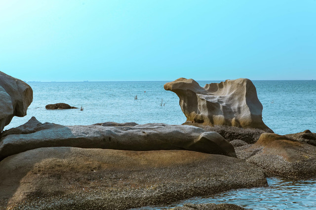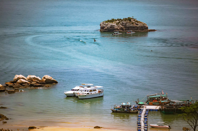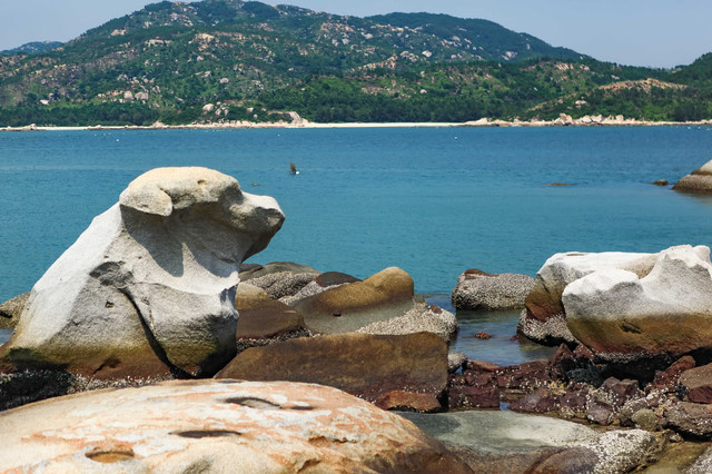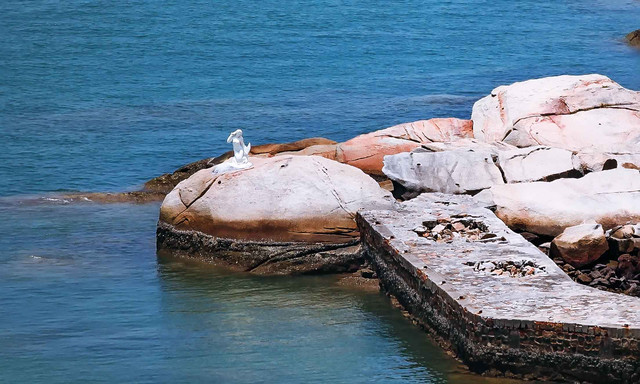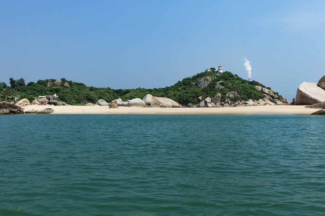 这个岛是典型离岛,四面环海。最大的山头,有山路石阶上到山顶,在此间登“高”远眺,可品海天相接,远山淡云的独特味道。 这岛分布有三个洁白的沙滩,一个月形的内海湾和一个天然石雕公园,由大小两个岛屿构成,退潮时两岛由沙滩相连。 此间是一个潜海的好去处,但因时间关系,我只坐船围着岛转了一圈,然后上岛匆匆一瞥就打道回府。