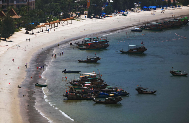 这些别墅可租可卖。租一栋,可住10几人,三四千元;卖的话,据说每平1.5W+。总体而言,价格比三亚大龙湾温柔很多。 第二,这里沙滩洁白,沙子超细,与内蒙古响沙湾沙漠细沙有的一拼——相机一不小心掉沙滩,根本无法清洗干净。因此,带着相机等数码产品到沙滩玩又想拍照的,与玩响沙湾一样,最好用保鲜膜啥的保护一下,不然那细腻沙子钻进去,你哭也没用。