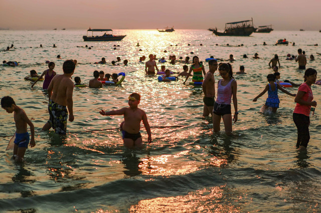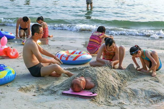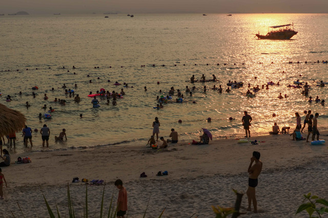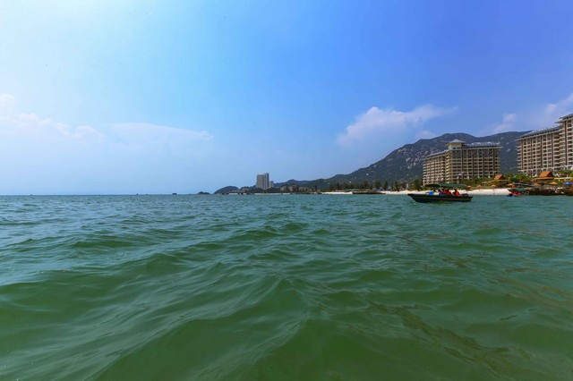 第四,中国海滨,东海南海渤海,都去过。倒不为酷爱海滩,只为增加一些阅历。单就海水和沙滩,全国各地形态几乎大同小异,差异就是沙滩的长短,沙粒的粗细,海水的清浊,还有就是浪的大小。之前感觉很个性化的,比如湛江的海湾,正切浪,力道很大,站在仅仅齐小腿深水里,一个浪子袭来,稍不注意,打你一个人仰马翻,很具刺激挑战性;三亚的正弦浪,起伏超规律,融入其频率,那是真正的随波逐流,那个爽,穿过从脚板心到脑门心。而巽寮湾,却是风平浪静,海天一色,风情脉脉……