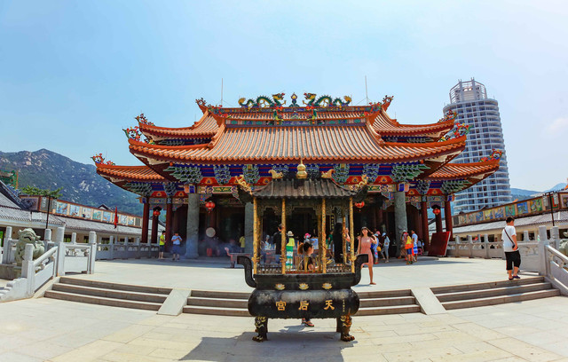广东福建沿海一带民众信奉妈祖——历代皇帝对妈祖进行了30多次的褒封,其爵位从“夫人”“妃”直到“天妃”,被当地民众尊称为“天上圣母”海上女神。 巽寮明代的妈祖庙经久风雨早已断壁残垣。金融街斥资重建,取名为“天后宫”。天后宫正殿供奉着海神天后妈祖、南海观音等10多位大神。