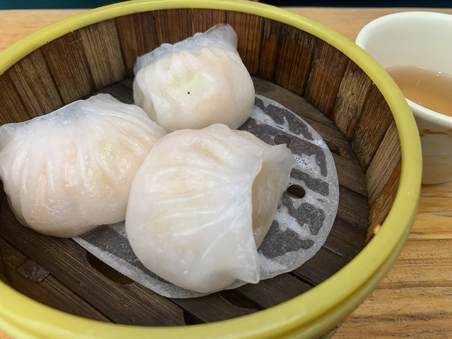 早茶必吃的虾饺,一份才18元。一份3个,每个内的虾肉都有3个。天哪。实在太实诚了。皮薄肉实!
