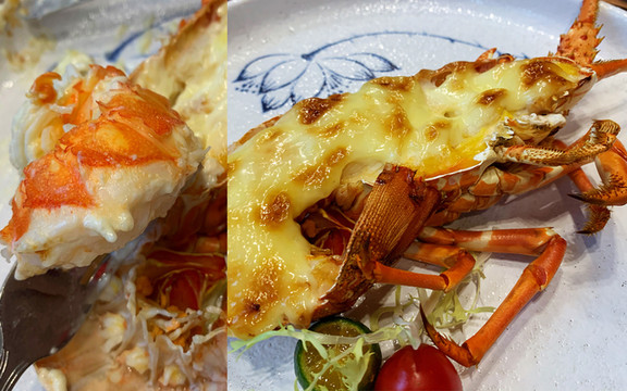 芝士焗小青龙。138元/斤。每人半只。感觉5两总归有的。龙虾肉果然新鲜的甘甜。