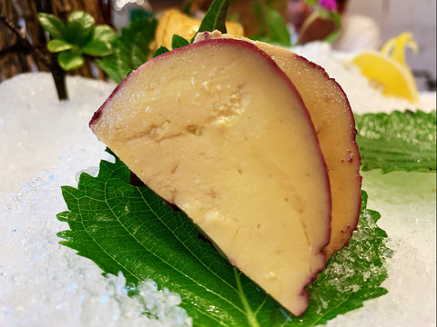 法式鹅肝:超级美味哦!鹅肝的品质绝对是高档西餐厅的出品质量。比一般的日料店的出品都好!冰镇的口感带出鹅肝的美味。吃起来细腻的不得了。没有一丝丝的腥味。只有美味。