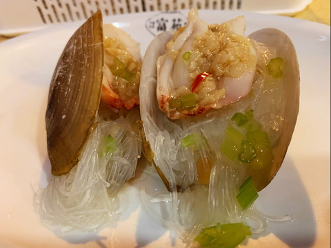 感叹:蒜蓉蒸扇贝被店家惊到了。上桌一大盆,12个扇贝哦!而且个头中等的扇贝呀!好开心啊,吃的满足哦!