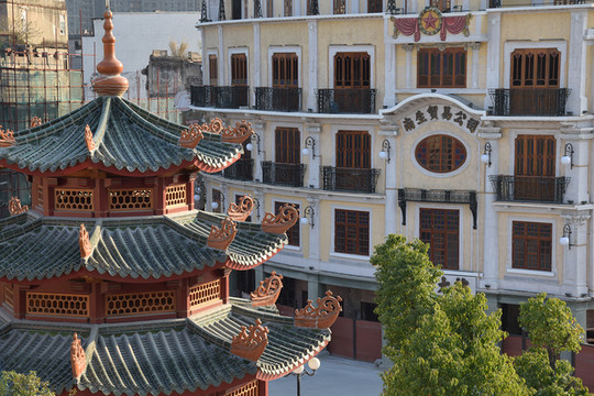 小公园最最有名的就是这个亭子和属于危房的南生贸易公司的百货大楼群。现在这2个建筑也算这里的网红打卡建筑哦。不过由于周围都是脚手架,对于拍摄取景的要求可是很高的,不然拍不出美感啊!
