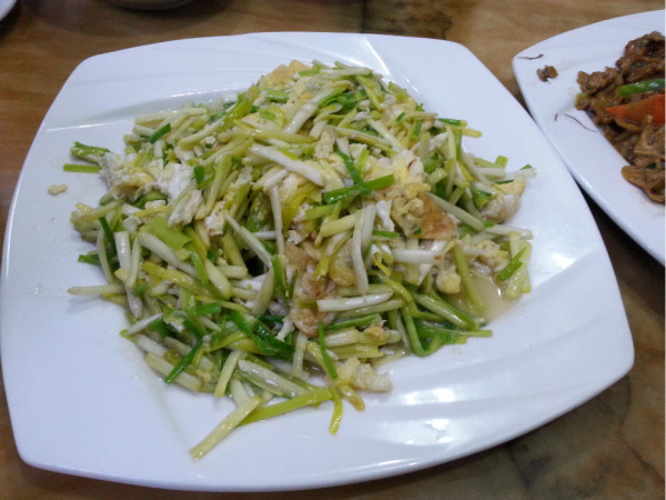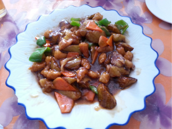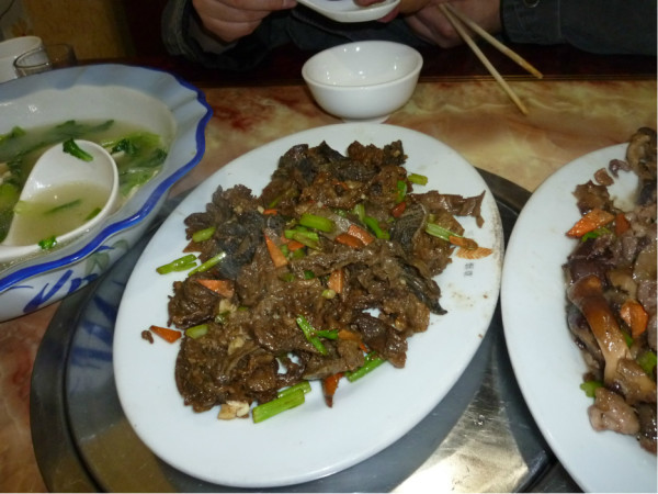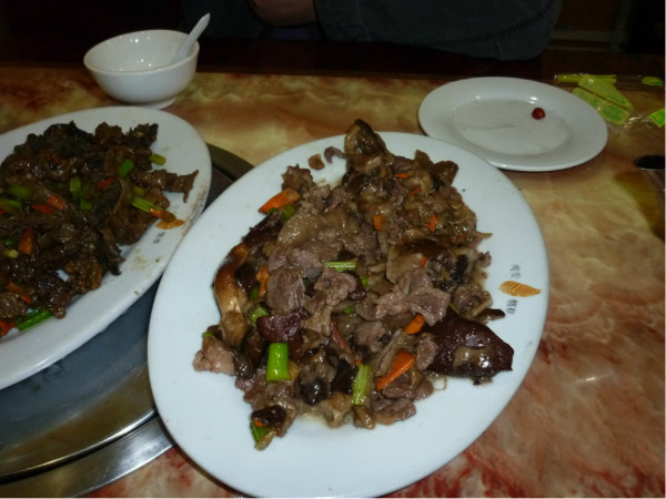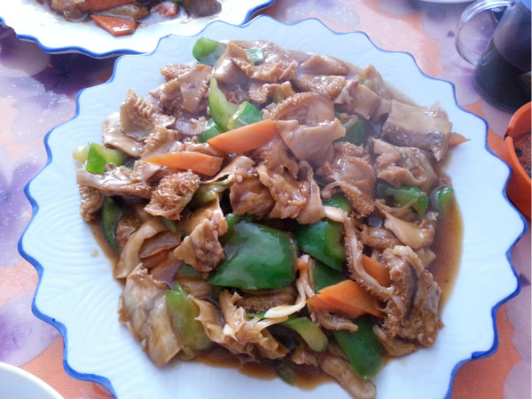 我们到达左旗已经是下午1点多了,路过左旗,在客运站对面的秀姐馅饼店,我们进去居然满座,只有老板娘算账的一个桌子让给了我们。我们点了肉烧茄子,熘牛肚,很厚的牛肚,量太大了,一共才88元。很好吃,内蒙古吃饭我就不说了,每个店你都要说烧的淡些,当地人口重。