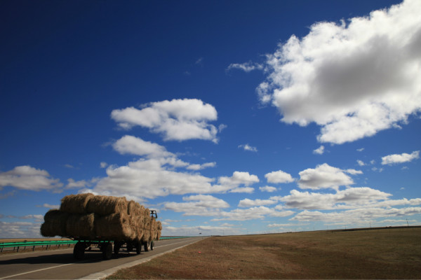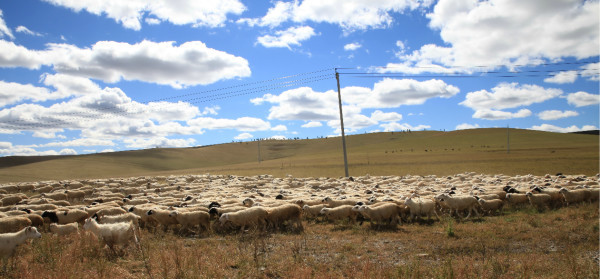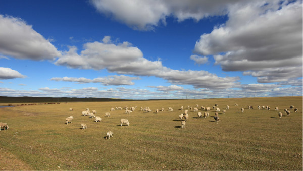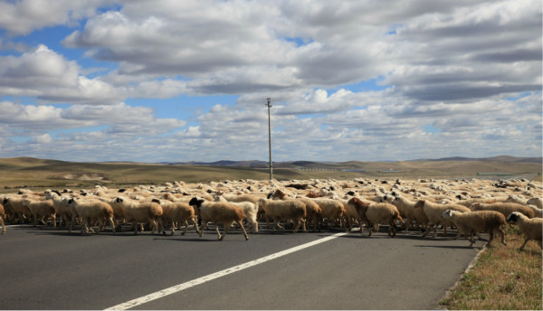 羊群已经到到马路另一边的草场