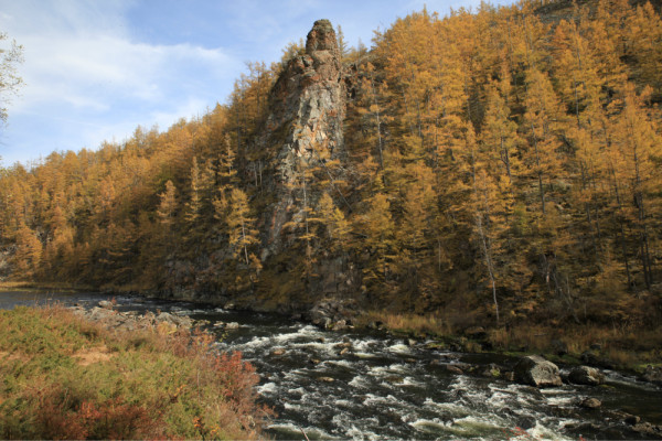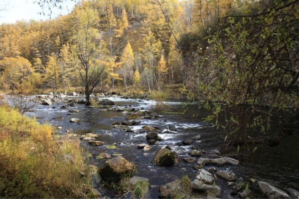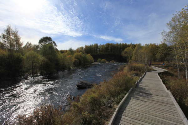 大峡谷:就是一个乱石堆。走在乱石堆的感觉会好些,水很清,乱石堆里会看见石兔,金色落叶松和白桦,蓝天和溪水。