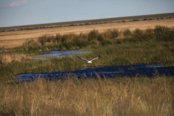离开了甘祖尔庙,我们去了乌兰诺尔湿地观鸟,已经是下午三点了,公路边有指示牌的,但是现在这个季节鸟已经不多了,从公路到观鸟湿地的路是土路,我们开得别克凯越,还行,只要不下雨,基本没问题。我们只能在湿地的边缘行走,旁边还有些牧户,放着牛群。整个湿地是用铁丝网圈起来的,防止捕鸟人进入。7,8月份可能鸟儿会多一些。
