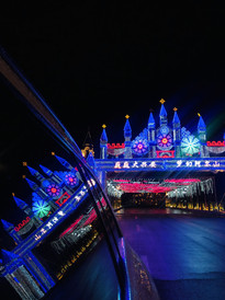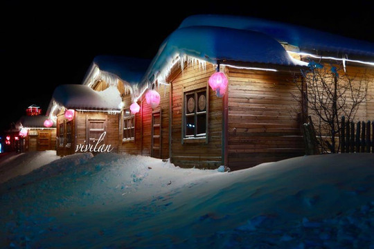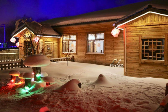 夜晚的雪村,多了几分浪漫梦幻的气息,这里也是今年阿尔山冰雪节的举办地,热热闹闹的环境,我们已经提前感受到了节日的气氛,厚厚的积雪在各色灯光的映衬下,充满了温馨安宁的气息。