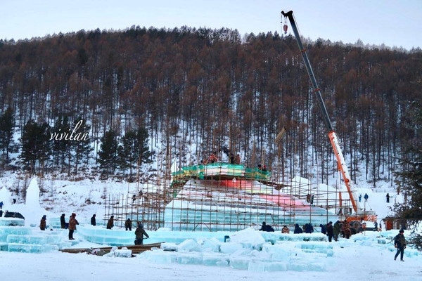 下周(12月21日)即将开始的阿尔山冰雪节正在紧张的准备中,滑雪场附近的冰塑到时将会呈现出一派梦幻浪漫的场景,一起期待一下吧!