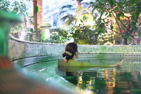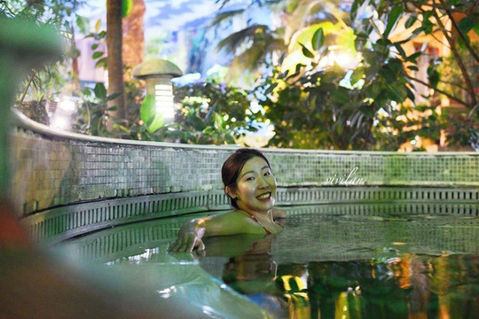 滑雪之后,来到温泉里放松身心,这里的温泉一共有48眼,分为冷泉,温泉,泉,高温泉4种,可以选择自己喜欢的泉水温度来泡,进门后的第一眼泉水温度不高,据说可以检查出自己是否身体有恙,感兴趣的朋友们可以试试看。