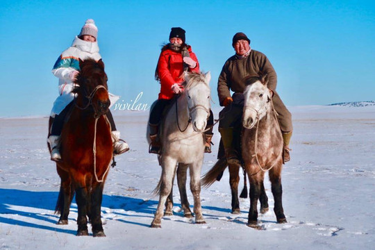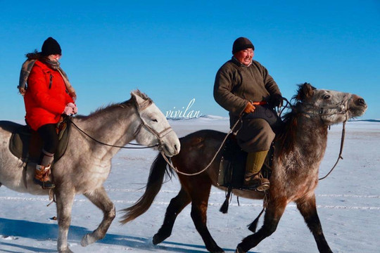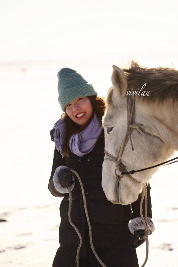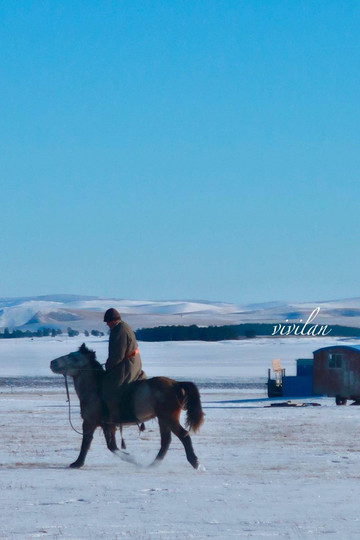 午后,骑马驰骋在冰雪草原里,自由飒爽,完全放飞了自我。