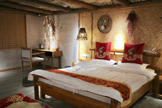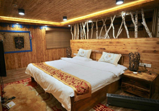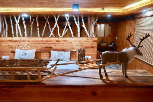 在雪村里也有民宿可以入住,因为很火爆记得提前预订房间。颇具蒙古风格特色的房间,有挂画,还有萌萌的麋鹿,房间里的布置风格采用了暖色调,像是走进了内蒙居民的家,温馨又自在。