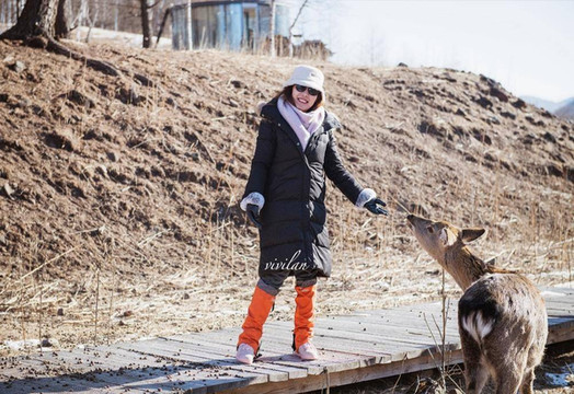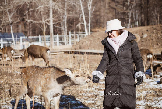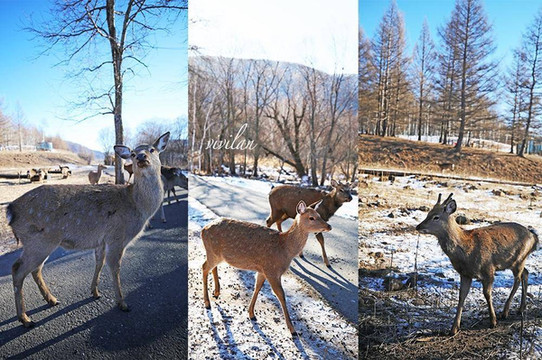 萌萌的小鹿并不怕人,看到我们来了就一拥而上,这个季节,可以在入口处选择大碗的玉米粒,端着喂给它们,这里的小鹿多了几分森系,与枯木融为一体,暖咖色调,专属于冬季的走心色彩。