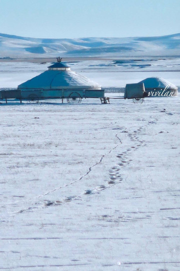 晚上还可以住在蒙古包里,感受置身冬日草原的暖心温度。
