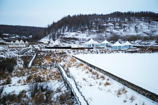 抵达七仙湖草原后,一派皑皑白雪的景象,宁静而纯粹,圆圆的蒙古包点缀其间,正午时分,袅袅炊烟缓缓升起,又多了几分实实在在的烟火气息。