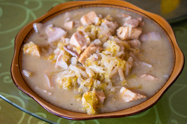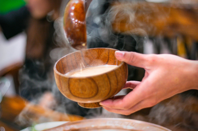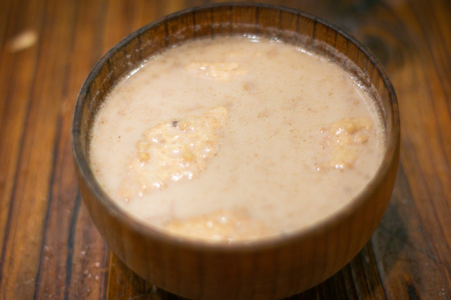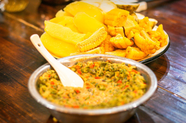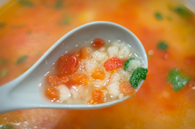 旮瘩汤:和我们平时见到的一样,加了一些蔬菜在内。