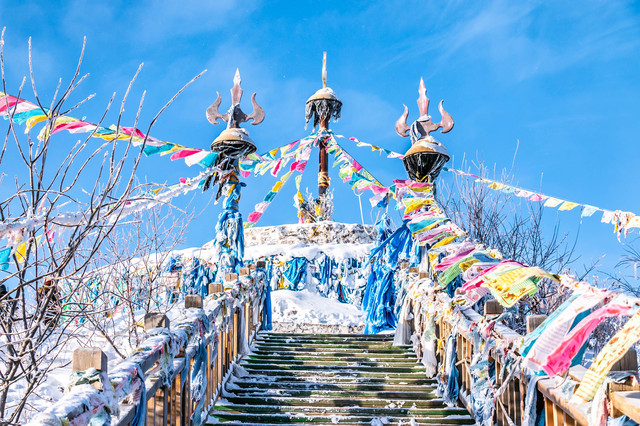 在前往敖包的途中,会看到沿途的树上挂满冰雪,是雾凇长廊,如果要到这里看雾淞,最好尽早从市区出发,至少要在太阳升起前抵达。天气太暖和的话,也会看不到的。